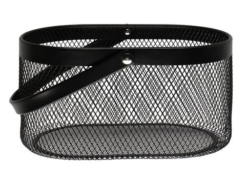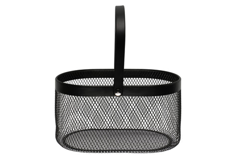 Lekker oval metallkurv pulverlakkert i sort- perfekt til sopptur, innhøsting i hagen eller bare oppbevaring i hjemmet. Hanken kan felles ned.