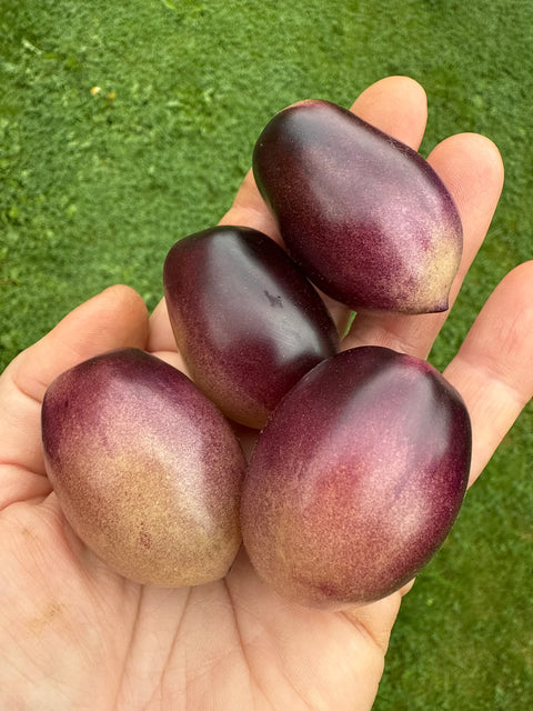 MärchenEngel produserer flaskeformede cherrytomater på rundt 5–25 gram hver, med en liten spiss ende.